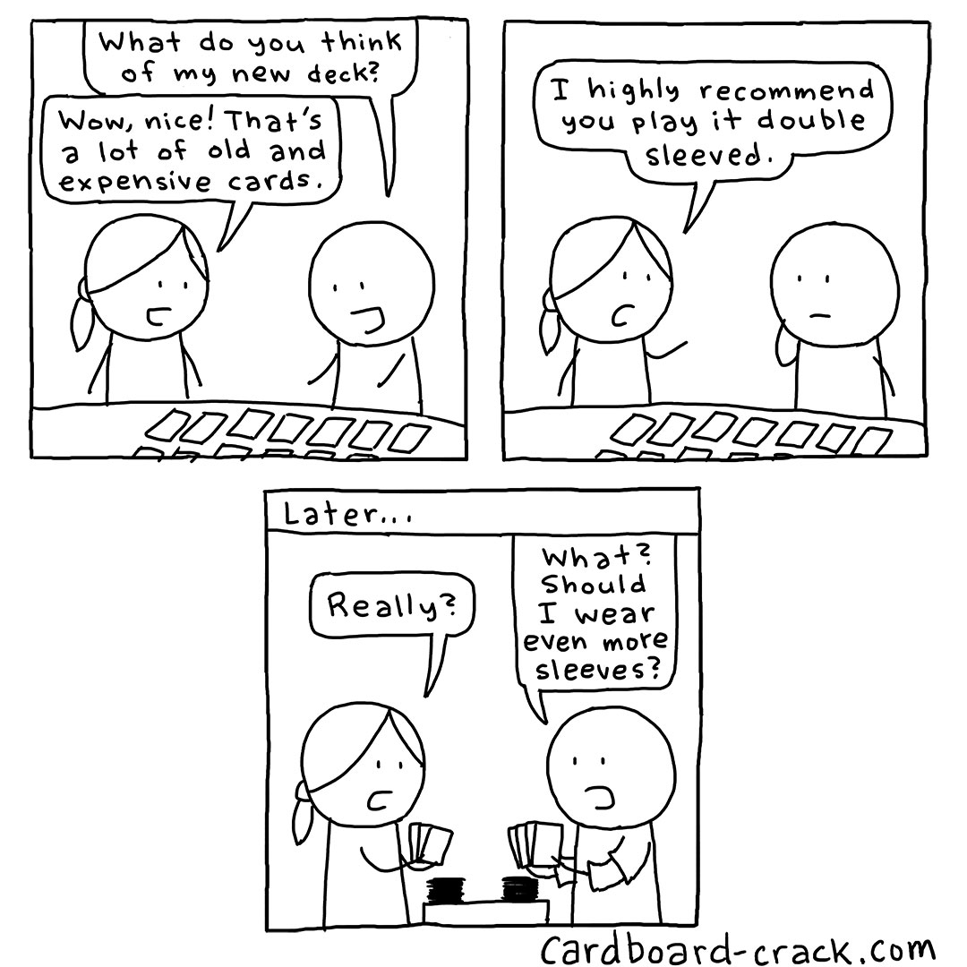 Do you typically double sleeve your cards when you play? I’ve gotten to the point where so many of my decks are double sleeved that I now just double sleeve everything out of habit. Otherwise it now feels too weird for me to shuffle a single sleeved deck! Any tripled sleevers out there?
